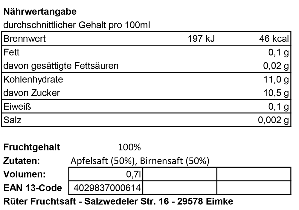 Birnensaft ist von Natur aus süß und säurearm. Eine “Korrekturzuckerung” ist gemäß Fruchtsaft-Verordnung nicht vorgesehen. Daher ist die Bezeichnung “ohne Zuckerzusatz gemäß Fruchtsaftverordnung” rein informativ. Leider darf dieses nicht einheitlich durch die Auslobung “ohne Zuckerzusatz” kenntlich gemacht werden. Kein einziger Fruchtsaft aus unserem Haus wird gezuckert.