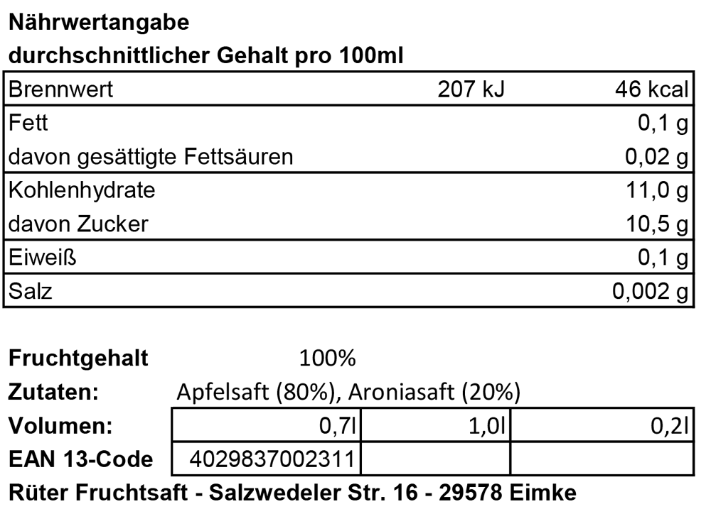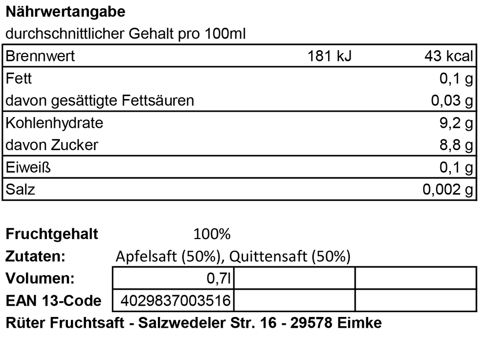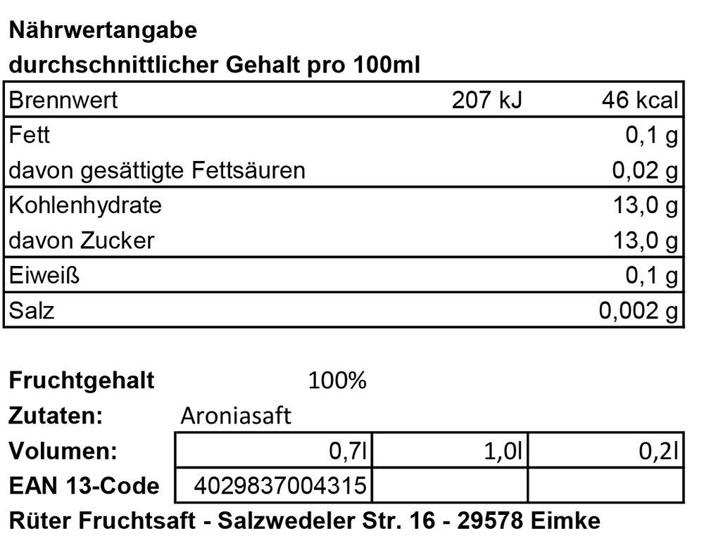 100 % ohne Zusatz von Aromastoffen, Farbstoffen und Konservierungsmitteln. Ein Saft kann direkt oder aus Konzentrat hergestellt werden. Der Zusatz von Konservierungsstoffen, Farbstoffen und Aromen ist nicht zulässig.