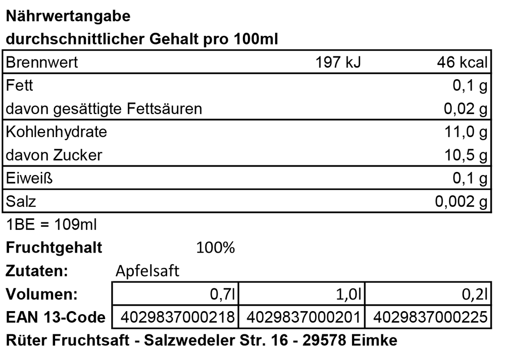 100 % ohne Zusatz von Aromastoffen, Farbstoffen und Konservierungsmitteln. Ein Saft kann direkt oder aus Konzentrat hergestellt werden. Der Zusatz von Konservierungsstoffen, Farbstoffen und Aromen ist nicht zulässig.