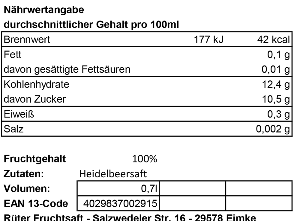 Heidelbeerdirektsaft stammt aus Heidelbeeren der Lüneburger Heide. Wie bei allen heimischen Früchten legen wir auch hier Wert auf regionalen Anbau. Ohne Zusätze, schonend produziert und haltbar in Mehrwegflaschen abgefüllt.